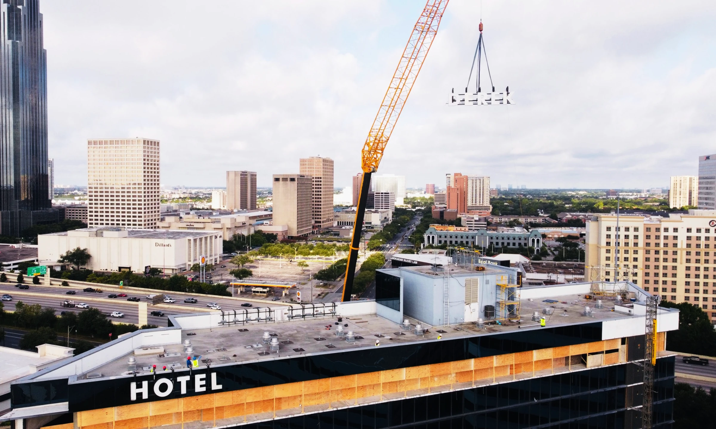Consolidated Crane & Rigging proved once again why we’re one of the hardest working crane teams in Houston completing a challenging job at the old Hotel Derek site in the Galleria on August 17, 2025. The job was part of a big renovation project to transition the hotel to its future successor, the Greenleigh Hotel.